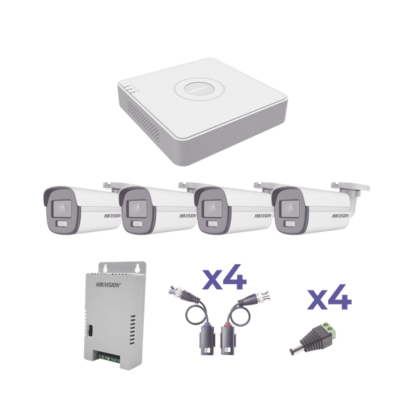 Kit IP 1080p (2 Megapixel) / NVR de 4 Canales con 4 Puertos PoE / 4 Cámaras IP Bala ColorVu Lite y ACUSENSE Lite / Micrófono Integrado Modelo: KIPCV2M/4B Marca: HIKVISION