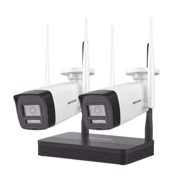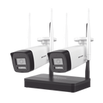 Kit IP Inalámbrico 2 Megapíxel / NVS 4 Canales / 1 Cámara Bala Exterior + 1 Cámara Turret Interior con Lente 2.8 mm y Dual Light / Audio Bidireccional (Micrófono y Bocina) / Soporta Micro SD de 512 GB
