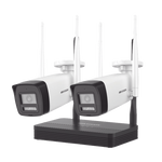 Kit ip inalámbrico 2 megapíxel / nvs 4 canales / 1 cámara bala exterior + 1 cámara turret interior con lente 2.8 mm y dual light / audio bidireccional (micrófono y bocina) / soporta micro sd de 512 gb